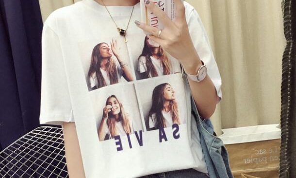 Loose print tee shirt wholesale